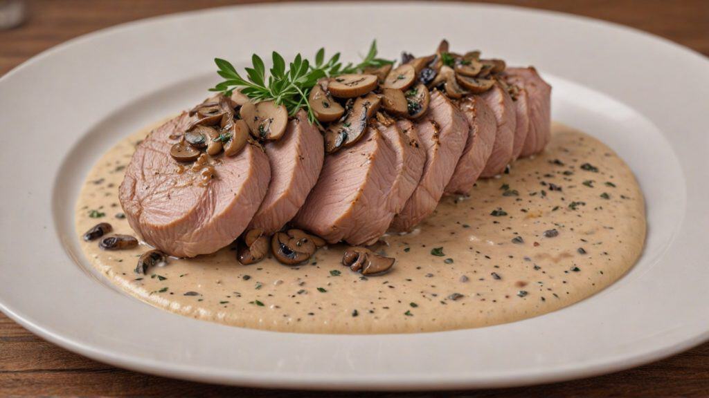 • Schweinefilet mit Champignonrahmsoße